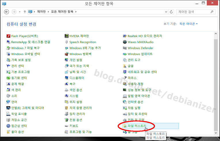 1. '제어판' > '파일 히스토리' 항목을 찾아서 클릭한다.