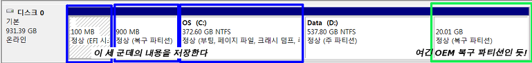 저 뒤 파티션을 어딘가에 백업하면 OS 초기설치 지점으로 되돌릴 수 있을 것 같은데 다시 건드릴 마음이 안생긴다. 혹여나 회사의 눈치를 보면서 다시 AS 센터로 갈야 할까봐 불안해서 말이다.