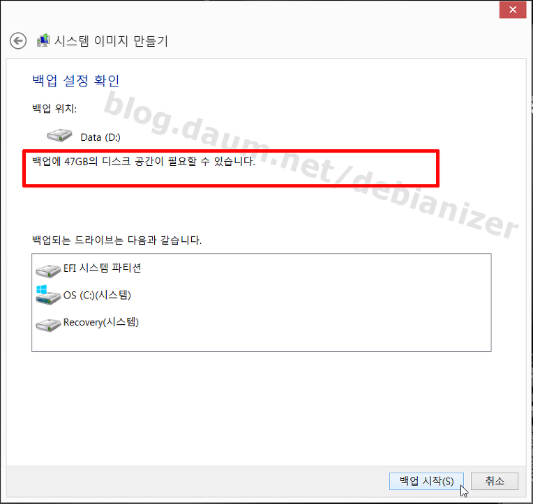 (앞으론 백업용 외장형 디스크에서 만일을 대비해서 100GB 정도로 백업용 공간을 별도 파티션으로 마련할 계획이다.)