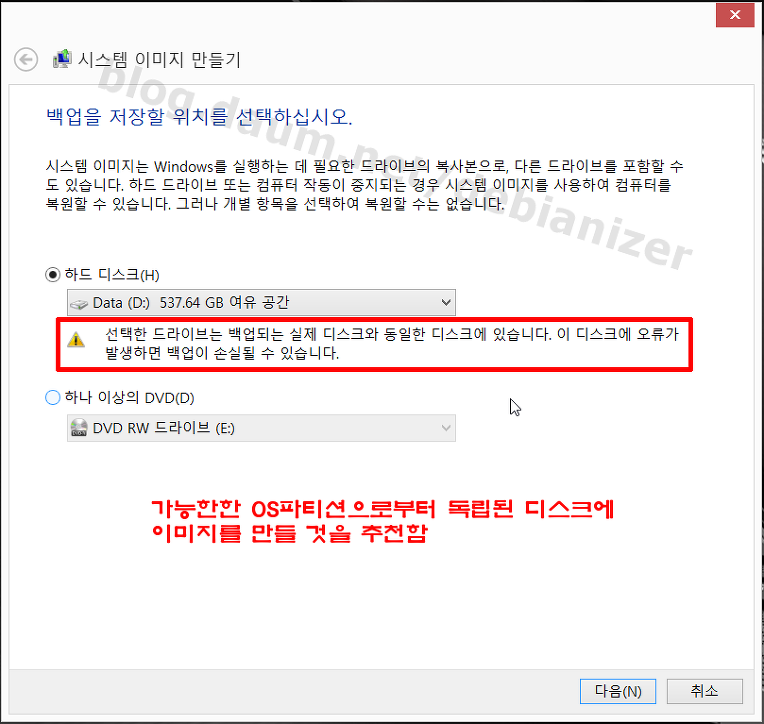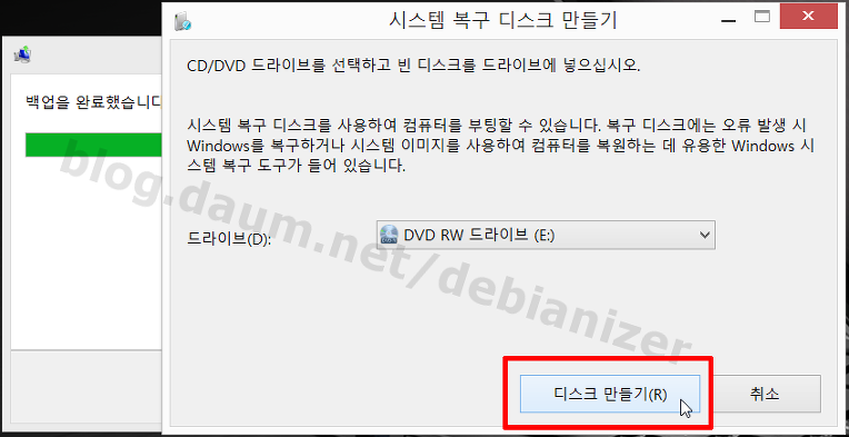 이렇게 윈도우즈8 시스템 복구용 이미지를 생성하였다.