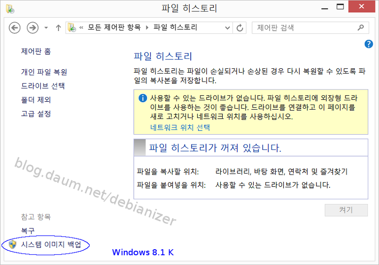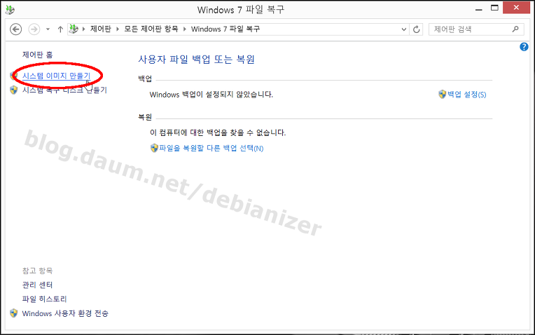 [윈도우 8.1 에서는 '시스템 이미지 백업' 항목이다]