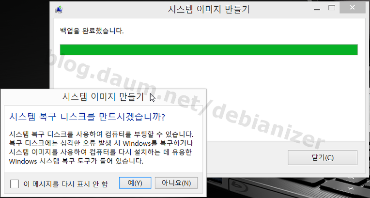 8. 백업 이미지 굽기가 끝나면 시스템 복구 디스크를 만들 것인지 또 묻는다.