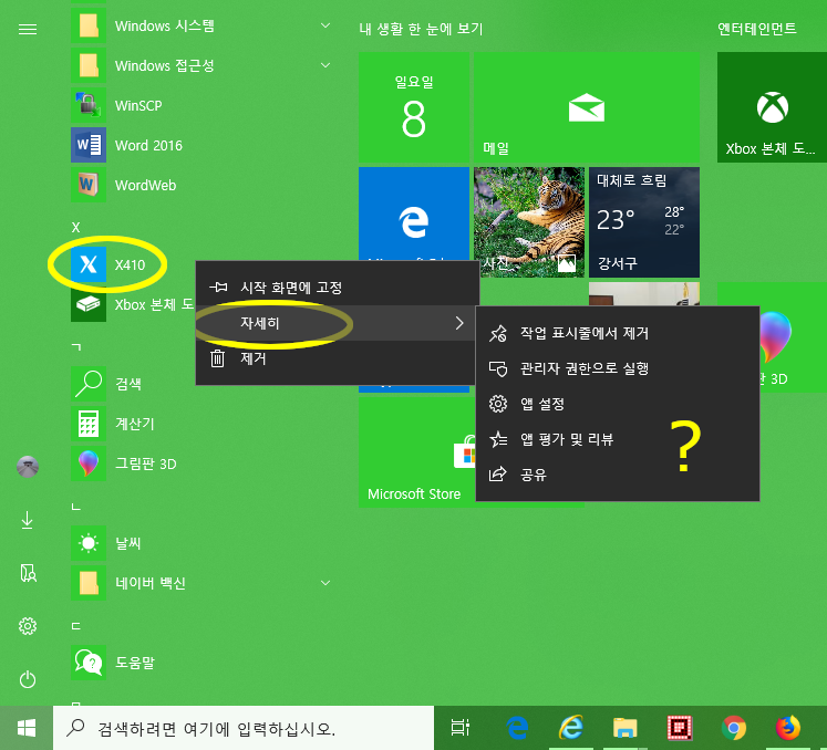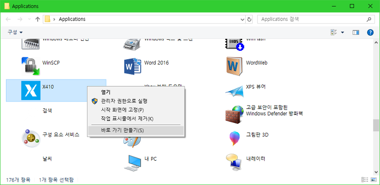 * X410 : Choung Networks 사의 제품이다. Xming 소스 기반이라고 알고 있다. Xming 은 띄울 때마다 [Next]-[Next]-Finish] 클릭을 해야 하기 때문에 시작 프로그램으로 등록하더라도 답답한데, X410 은 유료 - 구매 당시 할인해서 5천원? - 이지만, 이런 성가신 과정을 거치지 않기 때문에 1회 실행으로 X 서버를 바로 띄울 수 있다.