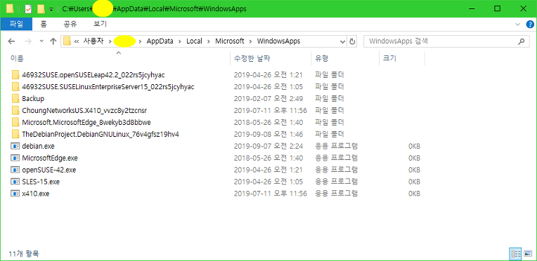탐색기에서 (윈도 설치 드라이브)\Users\(사용자계정)\AppData\Local\Microsoft\WindowsApps 밑으로 찾아서 여는 방법이 있긴 하다. 헌데 너무 구질구질하다.