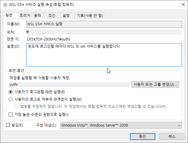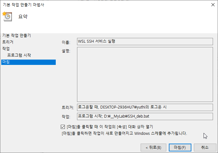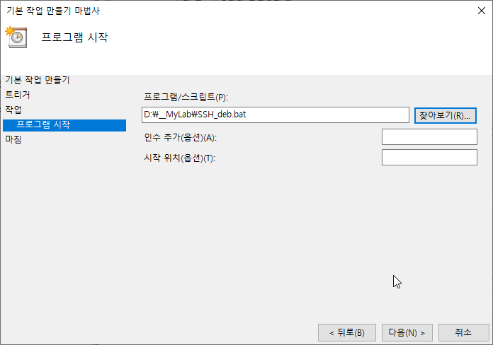 4] 윈도 스케줄러에 SSH 실행 배치파일을 등록하기