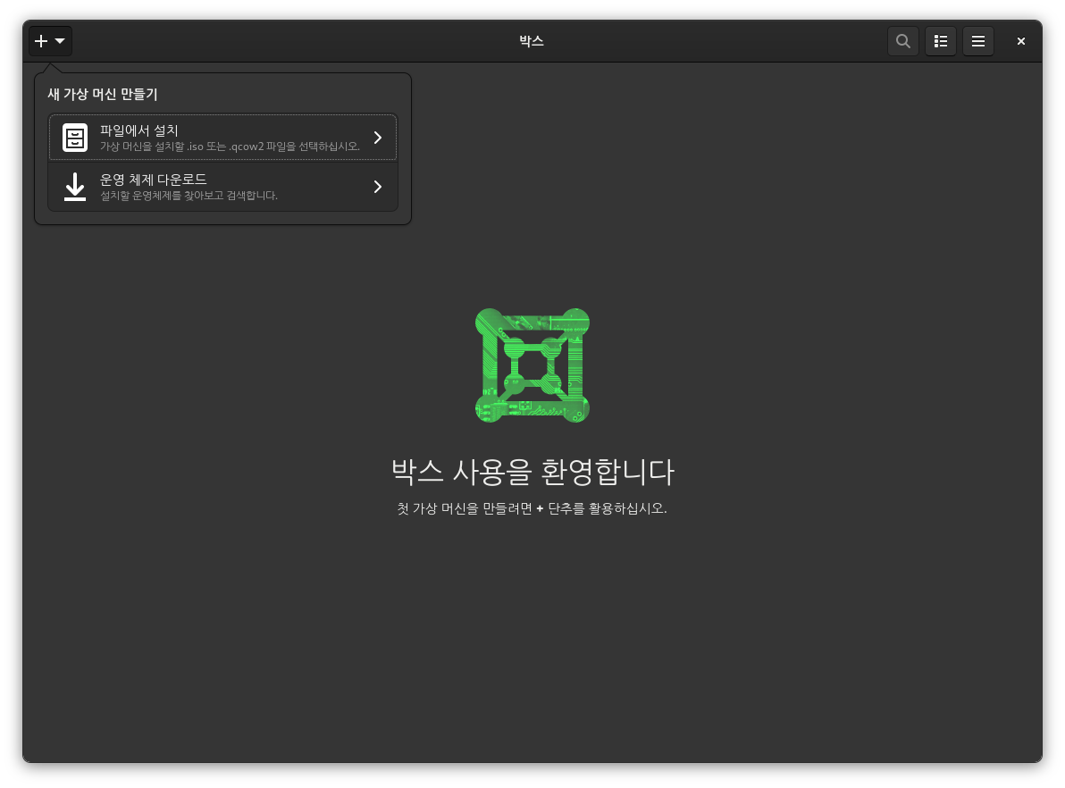 그놈에서 박스를 실행해보았다.