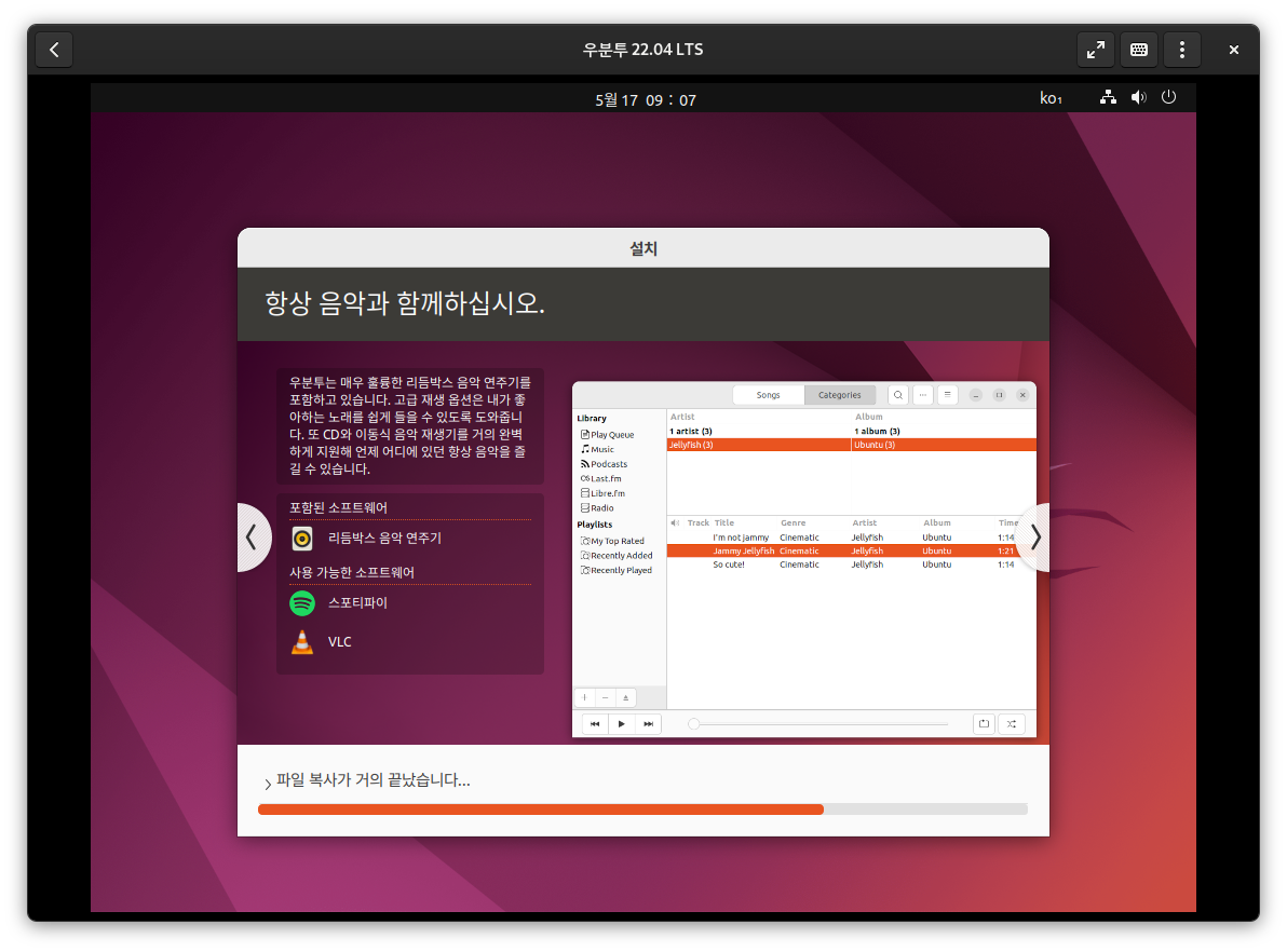 설치를 시작한지 한 10여분 지났나... 한 눈 파는 사이 어느새 설치완료 후 부팅되어 있다.