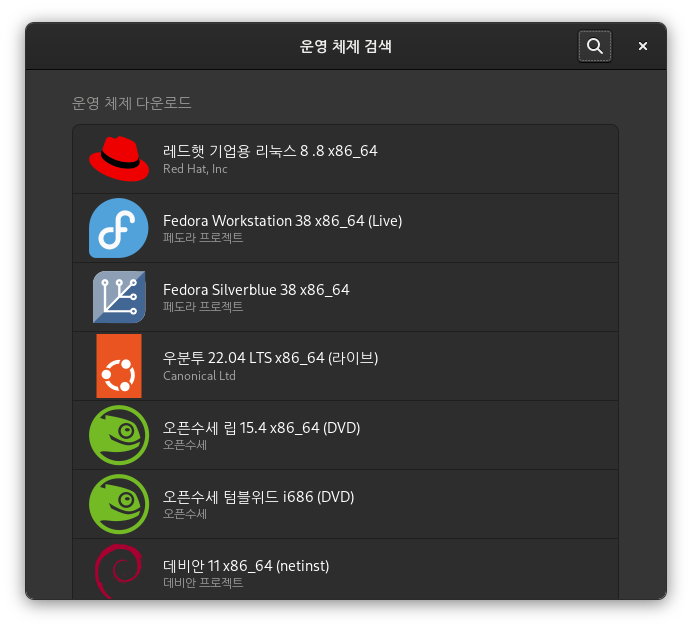 우분투 이미지는 한 종류(22.04 LTS x86_64) 만 들어 있어서 이것을 설치해본다.