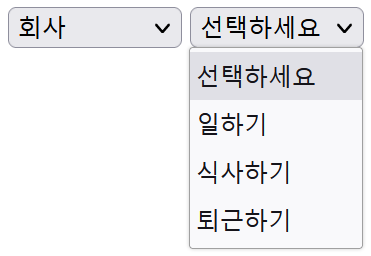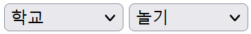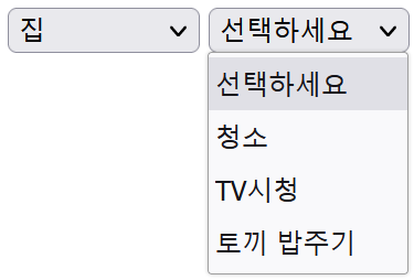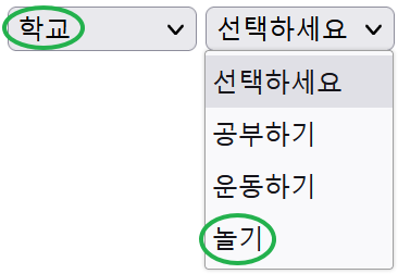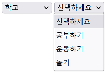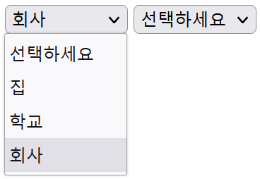 * 1번 SELECT 박스를 채울 때 두 번째 옵션을 기본선택되도록 selected 속성을 추가하고
