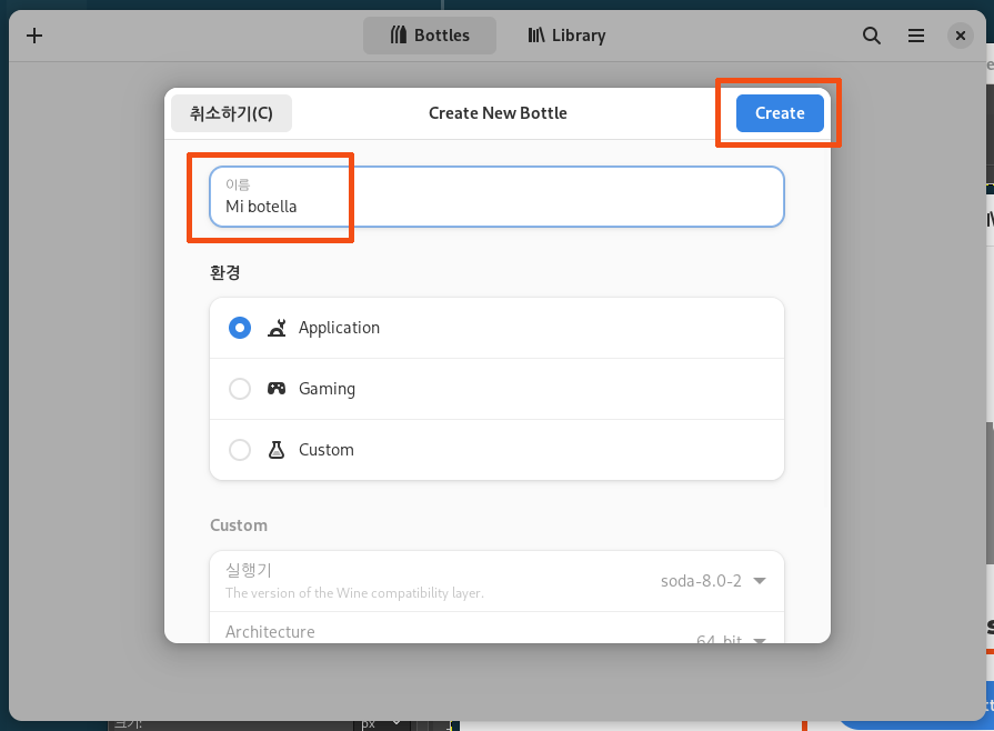 [리눅스에서 윈도 앱 실행] Flatpak < Bottles 보틀 생성