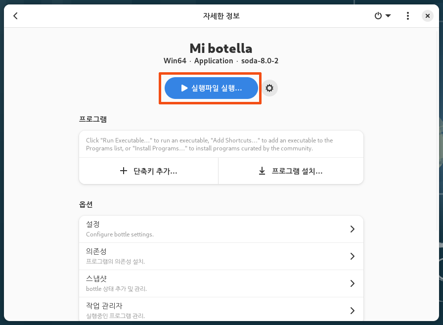 | [리눅스에서 윈도 앱 실행] Bottles 앱에서 기존 생성한 보틀 삭제하기 (0) | 2024.03.30 |