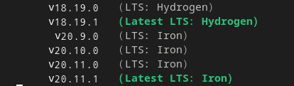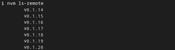 이건 `nvm ls-remote` 으로 볼 수 있다. (한꺼번에 많은 버전이 나오기 때문에 거를 필요가 있다)