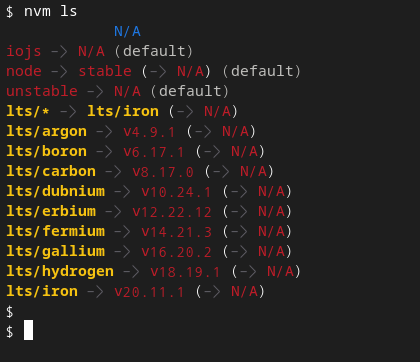 nvm ls