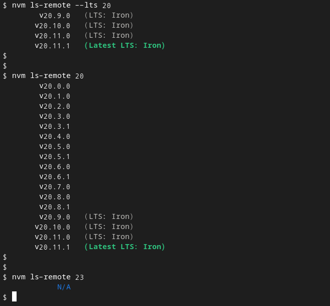 nvm ls-remote --lts