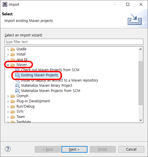 2) File > import 또는 Package Explorer > Import projects 를 클릭한다.
