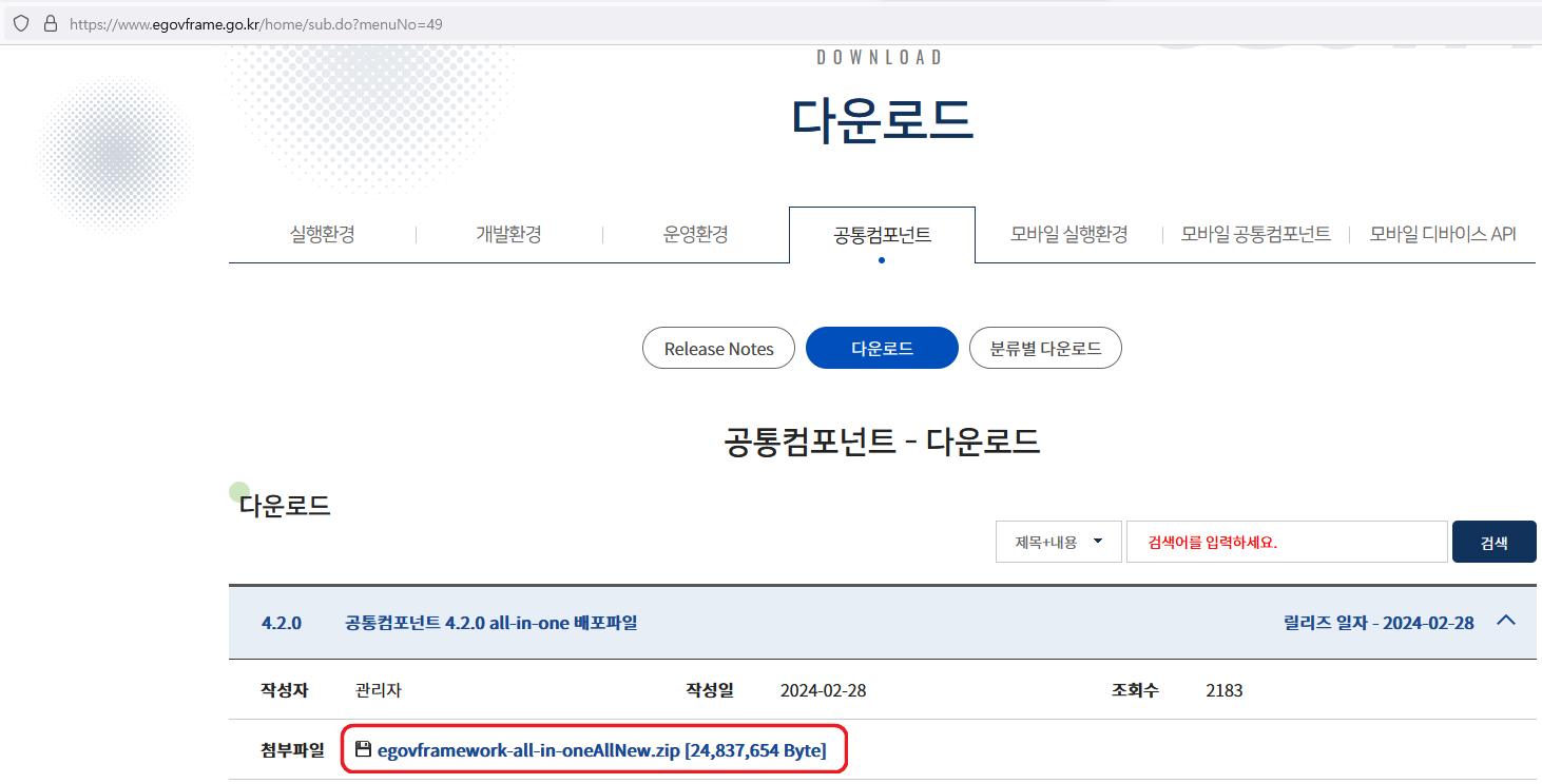 1) egovframework-all-in-oneAllNew.zip 을 다운로드한다.