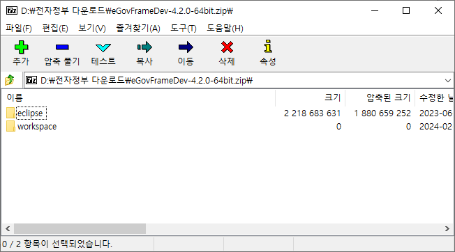 1) eGovFrameDev-4.2.0-64bit.zip (윈도 버전)을 다운로드한다.
