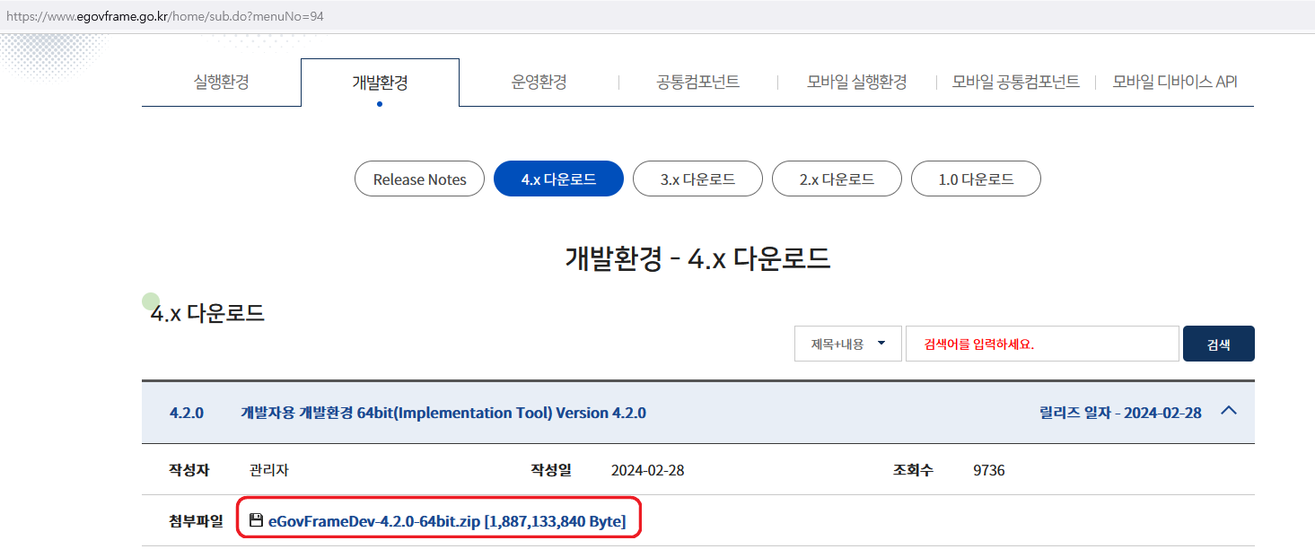 1) eGovFrameDev-4.2.0-64bit.zip (윈도 버전)을 다운로드한다.