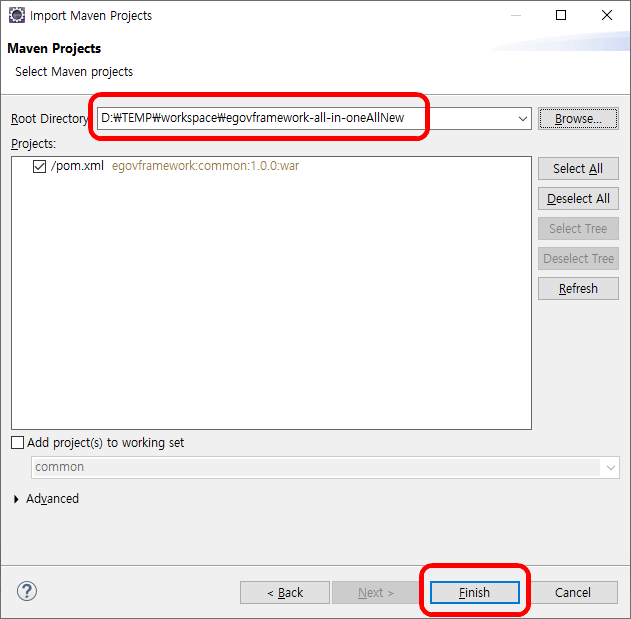 전자정부 공통컴포넌트(Template Project) 가져오기