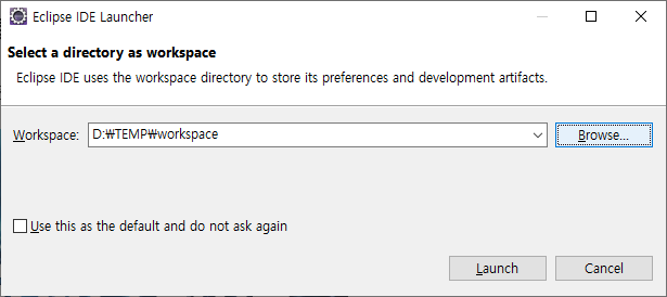 1) 앞에서 설치한 전자정부 Eclipse 를 실행한다.