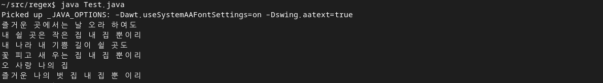 .replaceAll(" {2,}", " "); 읋 다시 적용해서 최종적으로 " " 하나로 줄인다.