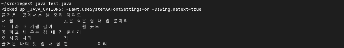 정규식 문자열을 "\t| {2,}" 으로 할 경우, [\t(탭)] 또는 [" " 2회 발생]이 아니며