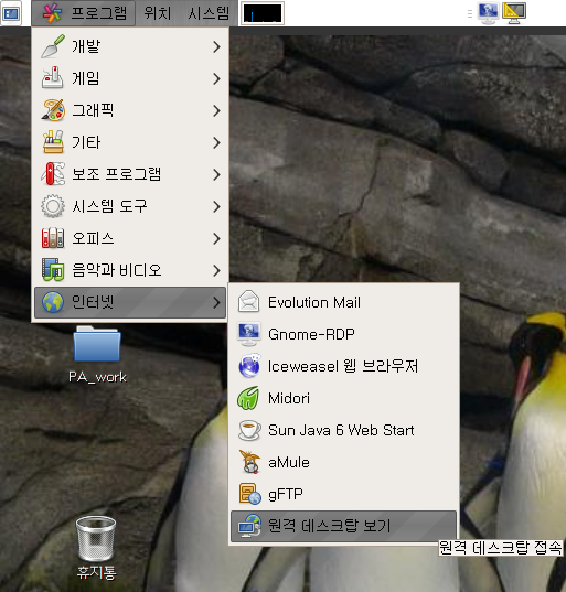 VINAGRE 를 설치하면 (데비안 배포본의 경우) [인터넷] -> [원격 데스크탑 보기] 가 등록된다.