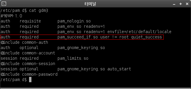 (debian) gdm3 에서 가장 아쉬운 점이 root 로 로그인 할 수 없다는 것이다. 메뉴로 조차 접근할 수 없으니 없다고 생각 할 수도 있는 것이다. 이게 아쉬워서 gdm3 매뉴얼을 뒤져 보니 pam 설정을 따른다. 즉, /etc/pam.d/ 로 이동하면 gdm, gdm-autologin 이 있다.