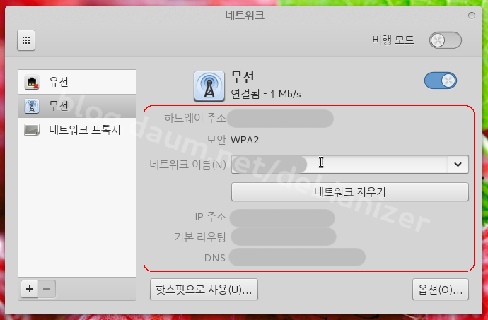 (선택 불필요. 위 옵션을 넣으면 WIFI 연결 장애가 자주 발생함. 한 번 끊어지면 다시 붙이기 어려움.