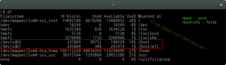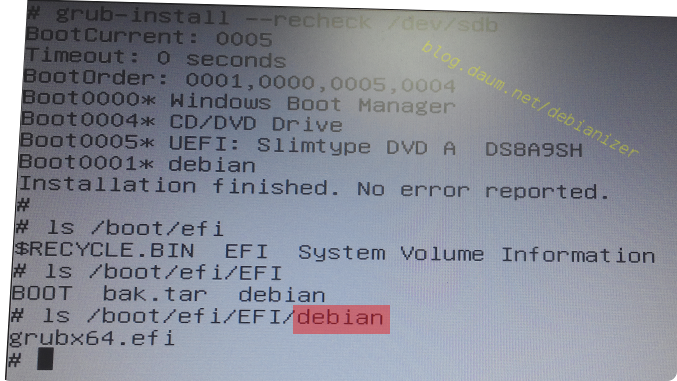 /boot/efi/EFI/debian 에 grubx64.efi 가 생성되었다.