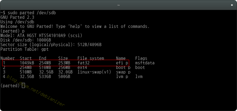 [ /dev/sdb 에 위치한 리눅스 파티션 정보 -- GPT ]