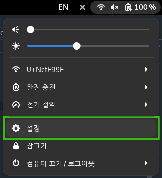 1) 우측 상단의 위젯을 클릭해서 설정메뉴를 누른다.