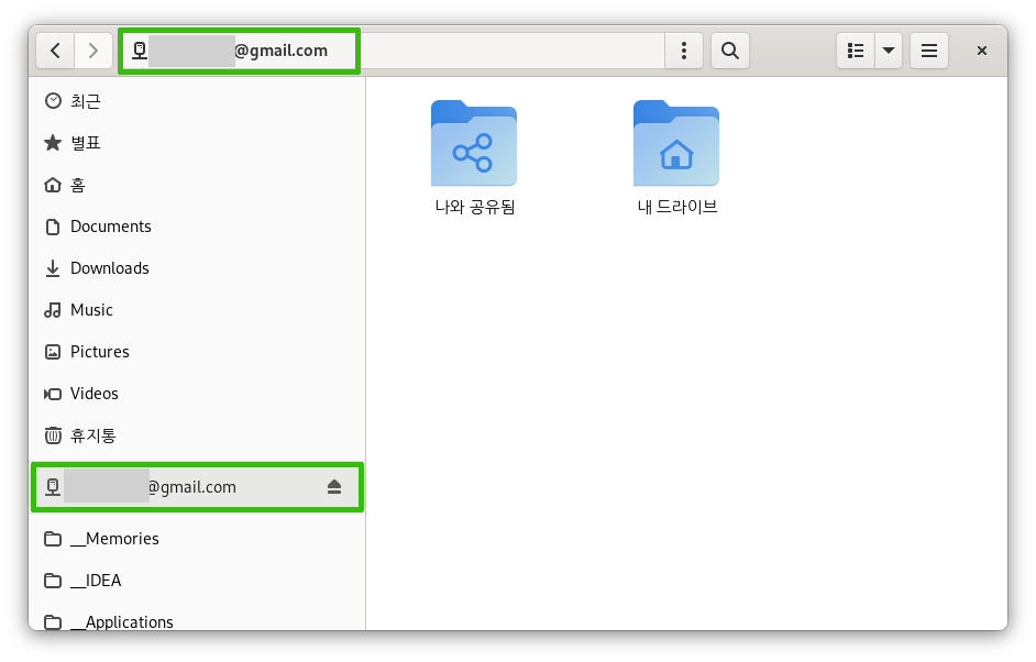 4) 사용하기. 그놈 탐색기, 요즘은 그놈 파일이라고 하던가? 예전의 노틸러스. 아무튼 이것의 왼쪽 사이트바에 구글 드라이브 계정이 연결된 게 보인다. 여기에 파일을 끌어다 놓으면 바로 동기화된다. FUSE 너무 좋아~