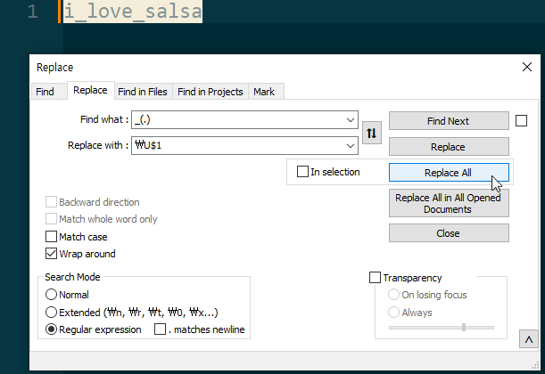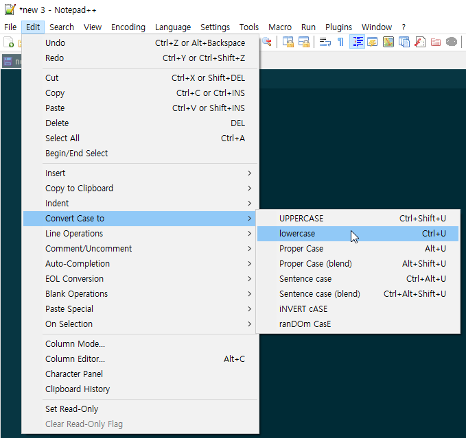 노트패드++ 에서 통하는 방법이다. 다만, 저 방법을 적용하기 전에 우선 모두 소문자로 변환해야 한다.
