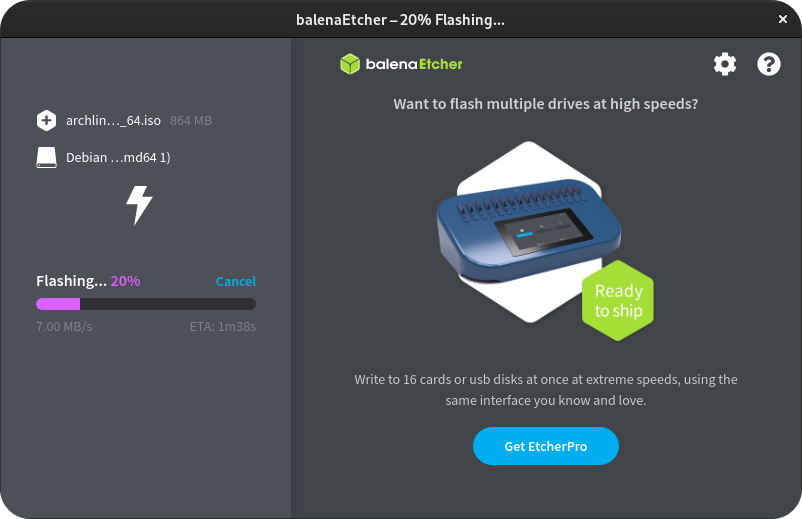 윈도OS 전용으로 Rufus 가 있다면 리눅스에는 이 프로그램이 있다. balenaEtcher 는 윈도 / 맥 / 리눅스를 모두 지원한다.