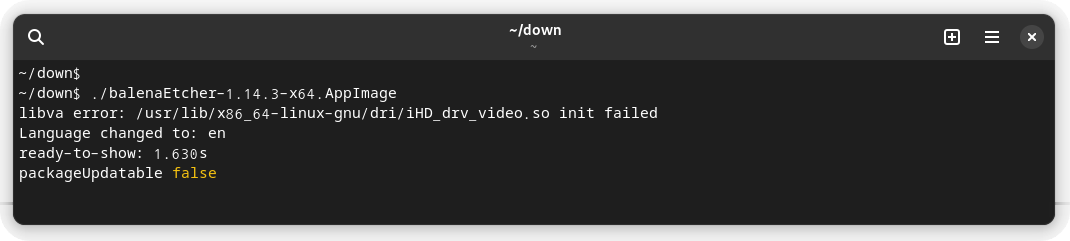 실행하면 libva 오류가 뜨지만 이미지를 구울 때 문제 되지 않음