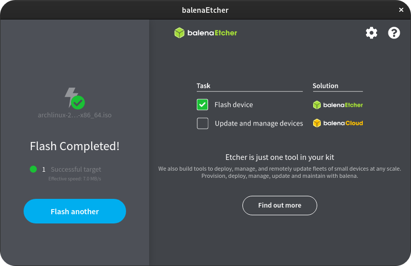 윈도OS 전용으로 Rufus 가 있다면 리눅스에는 이 프로그램이 있다. balenaEtcher 는 윈도 / 맥 / 리눅스를 모두 지원한다.