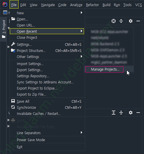 [Manage Projects...] 를 클릭하면