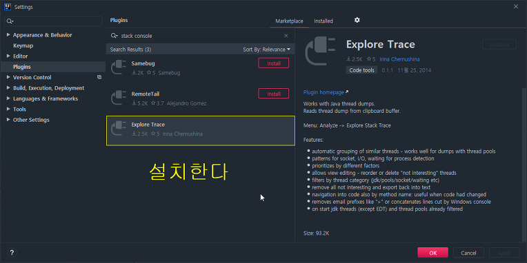 1. 'Explore Trace' 플러그인을 검색해서 설치한다.