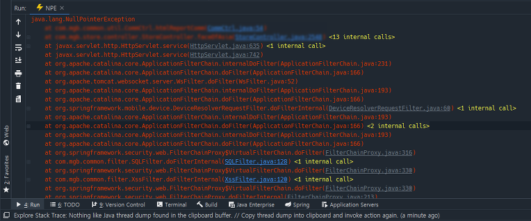 IntelliJ 하단에 번개아이콘이 그려진 "NPE" 탭이 뜬다.