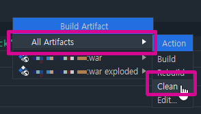[All Artifacts]-[Action : Clean] 을 클릭하면 기존에 디플로이(설치?)된 캐시가 삭제된다.